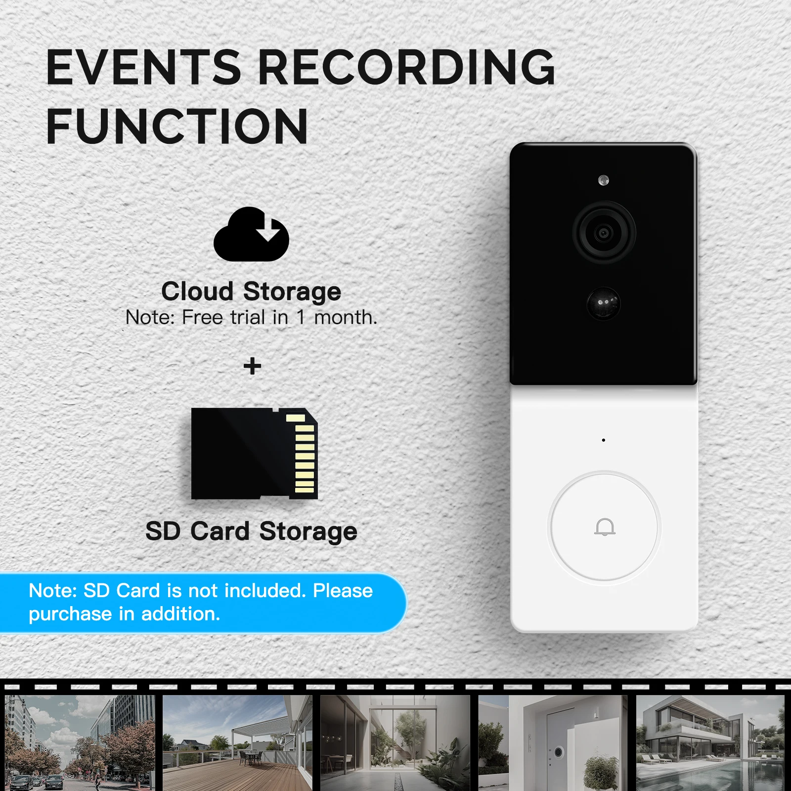 One month free could storage in App or inserted SD card allows you to save and check the monitoring records of events.