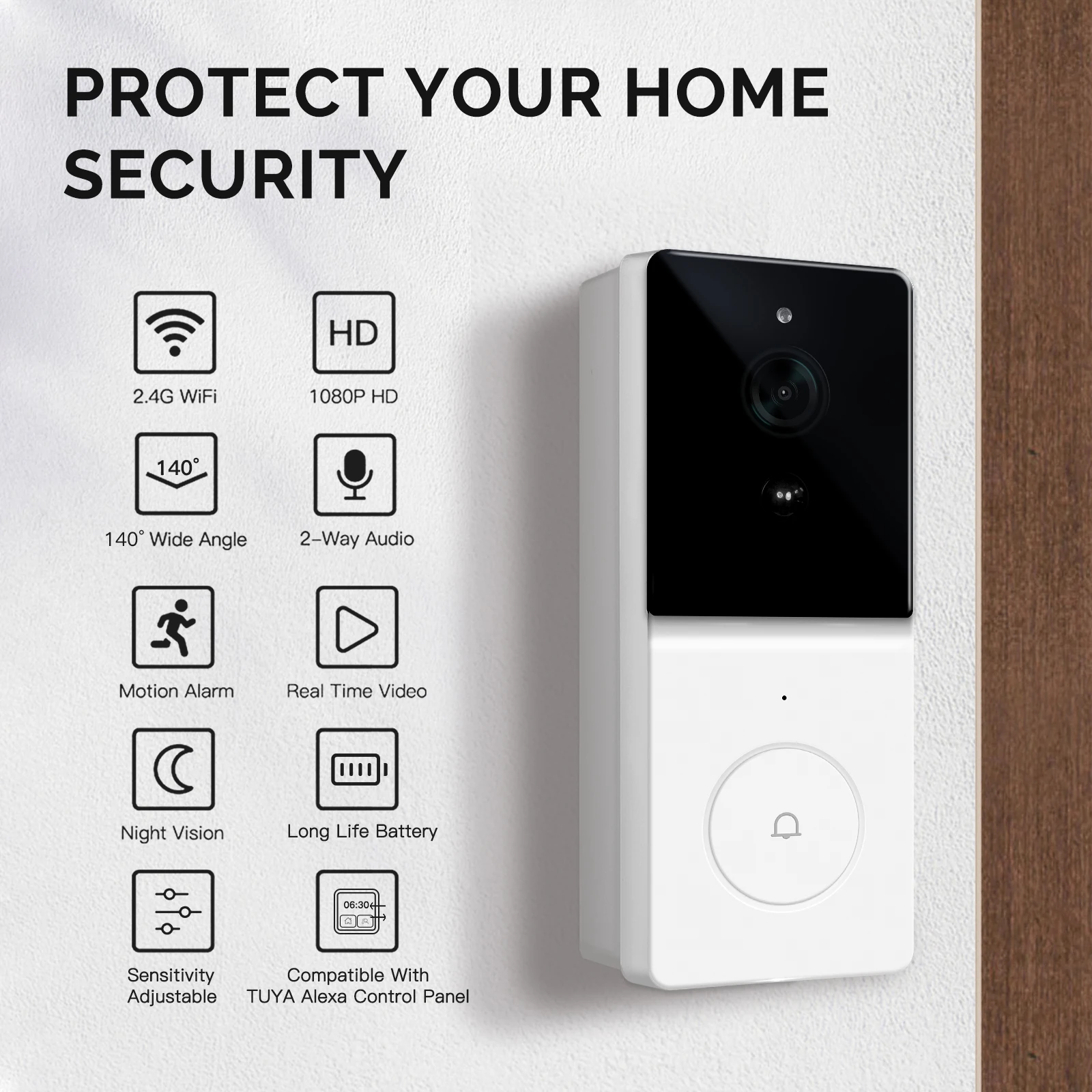 The built-in HD1080P wide-angle camera with broad view of 140° and Infrared sensing for night vision,provides the clear image for better monitoring doorway situation at night.